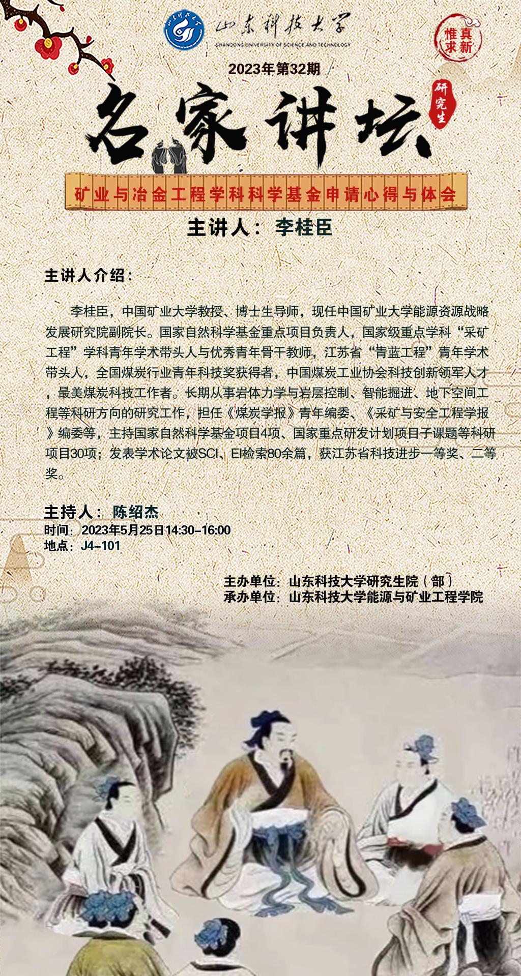 “名家讲坛”2023年第32期:矿业与冶金工程学科科学基金申请心得与体会(总833期)