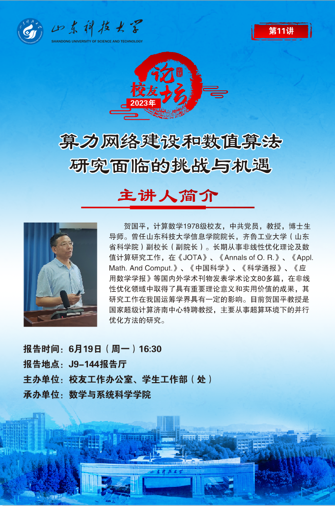 “校友论坛”2023年第11讲:算力网络建设和数值算法研究面临的挑战与机遇