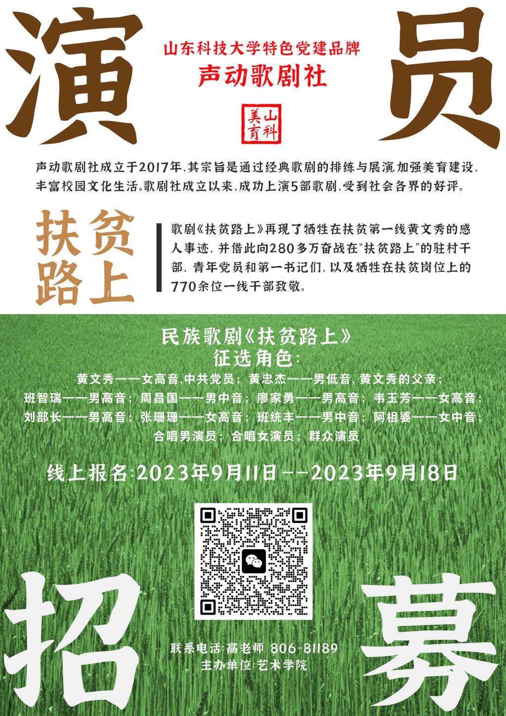 【山科美育】9728太阳集团特色党建工作品牌——歌剧《扶贫路上》演员招募