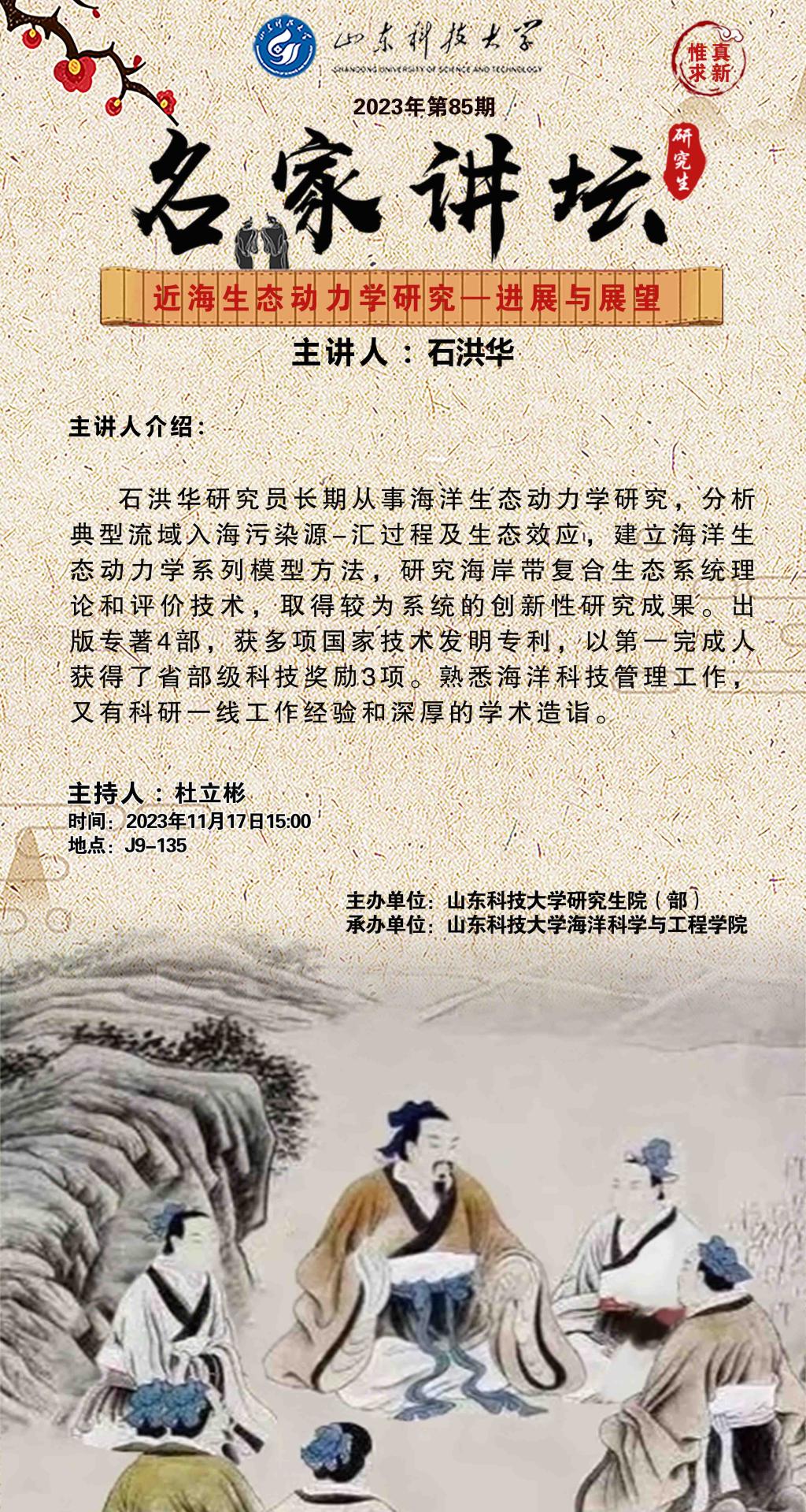 “名家讲坛”2023年第85期:近海生态动力学研究——进展与展望(总886期)