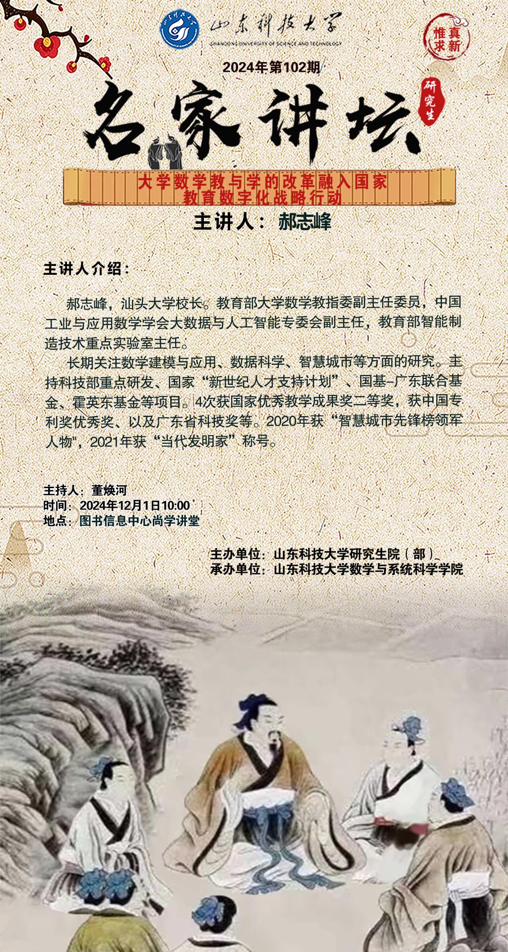 “名家讲坛”2024年第102期:大学数学教与学的改革融入国家教育数字化战略行动(总996期)